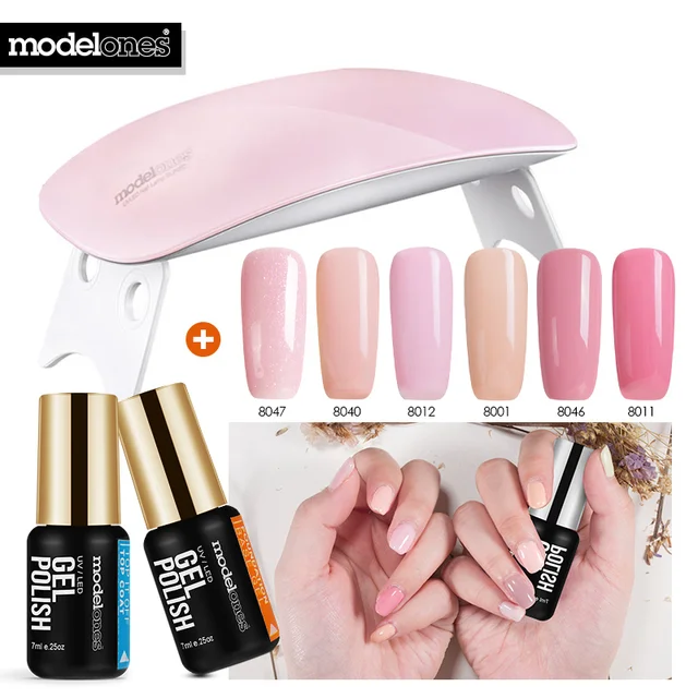 Modelones 9 Teile Los Sunmini Led Uv Lampe Nagel Trockner Set Diy Nail Art Rosa Farbe Serie Nagel Gel Set Basis Mantel Top Mantel Uv Nagel Set Nail Set Nail Dryer Setnail Gel Set