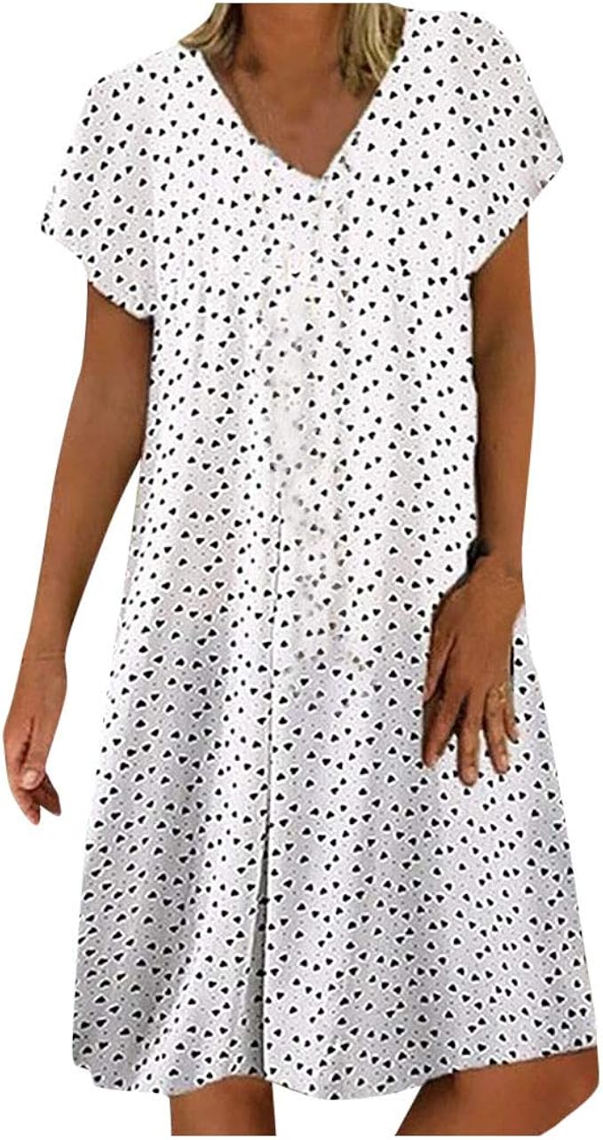 Rosennie Damen Kleider Sommer Knielang Grosse Grossen Kleid Freizeitkleid Casual Lose Kurze Armel O Ausschnitt Polka Dot Print Strandkleider A Line Tunika Hemdkleid Amazon De Bekleidung