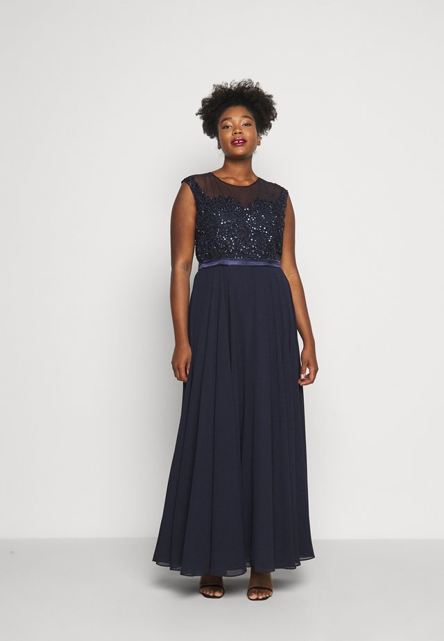 Grosse Grossen Abendkleid Lang Hochzeitskleid Mit Pailletten Spitze Marine Gr 48 Sheego In Hochzeitskleid Hochzeitskleid Elegant Hochzeitskleid Spitze Vintage