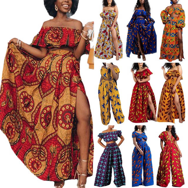Ankara Afrikaner Stil Damen Schulterfrei Tops Rock Hosen Jumpsuit Sommer Outfits Ebay