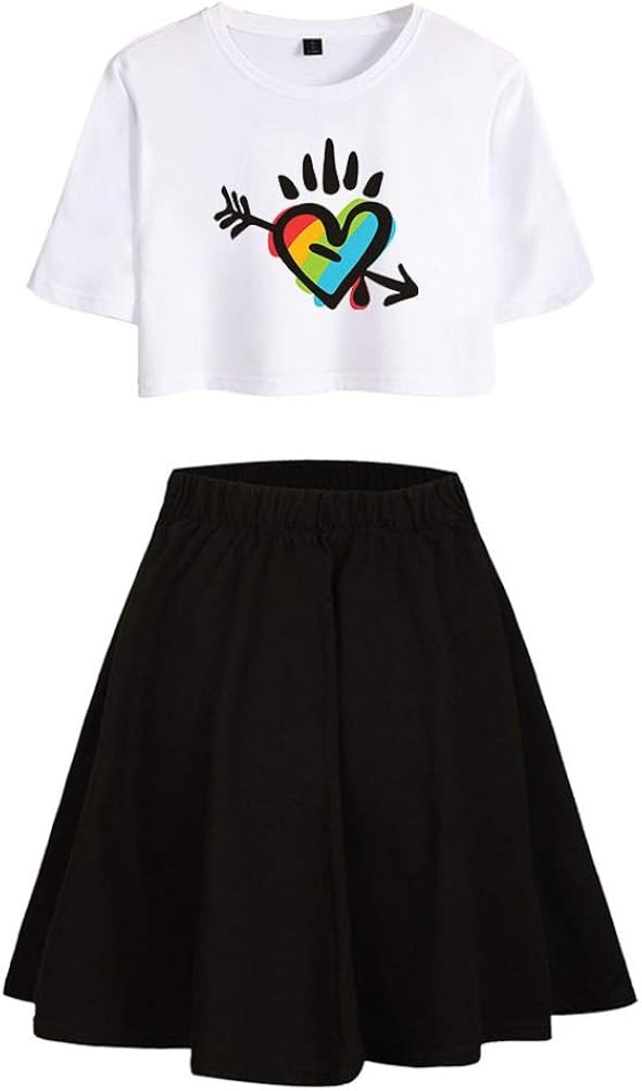 Jltph Damen Lgbt Regenbogen Herz Gedruckt Crop Top T Shirts Und Rock 2 Stuck Anzug Sportanzug Bisexuell Shirt Gay Pride Freizeitanzug Trainingsanzuge Outfits Sommer Streetwear Sets