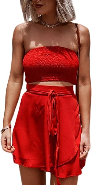 Damen Frauen Im Sommer 2 Pieces Outfit Bandeau Pflanzliche Top Rock Werden Gezeigt Red L Amazon De Bekleidung