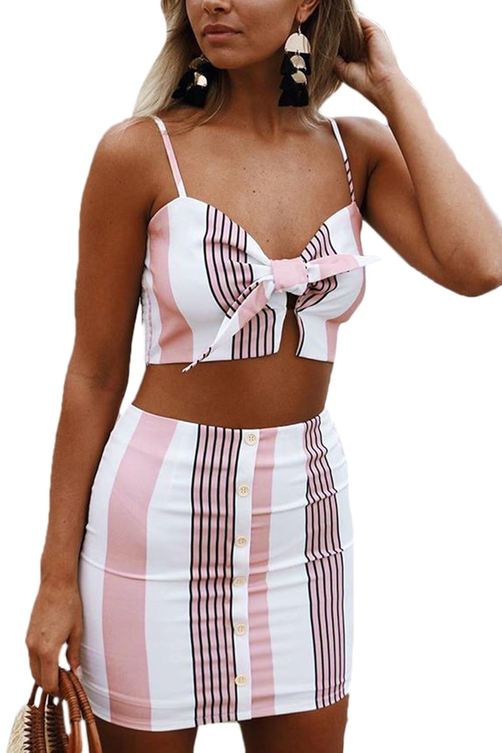 Damen Damen Sommer Zweiteiler Outfits Spaghetti Trager Kurze Top Rock Set Pink S Bekleidung Luxdental Si