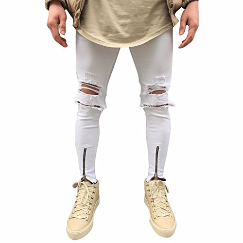 Herrenmode Herren Jeans Loch Denim Zipper Hip Hop Hosen Slim Fit Skinny Zerrissen Destroyed Kleidung Accessoires Items Aurora Com Gt