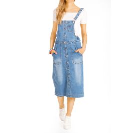 Uskees Midi Latzhosenkleid Darkwash Denim Damen Latzkleid Modisch Ebay