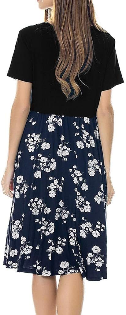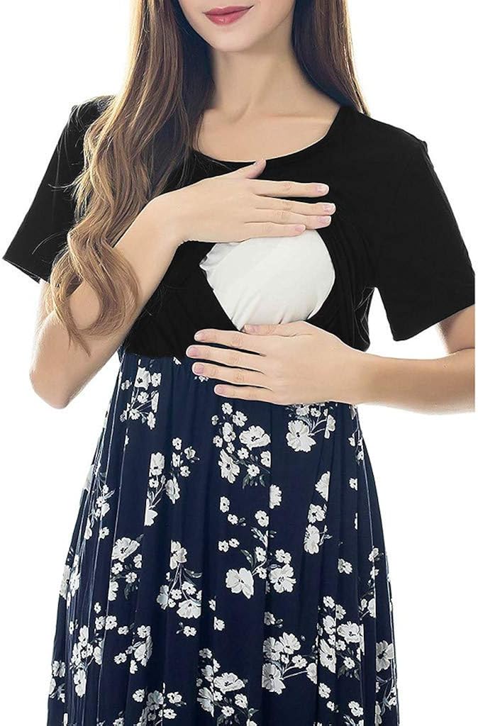 Frauen Sommer Kurzarm Spleissen Drucken Umstandsmode Minikleid Mutterschaft Stillen Nursing Freizeit Kleid Layereddesign Wickeln Schicht Huhu3 Damen Still Kleid Umstandskleid