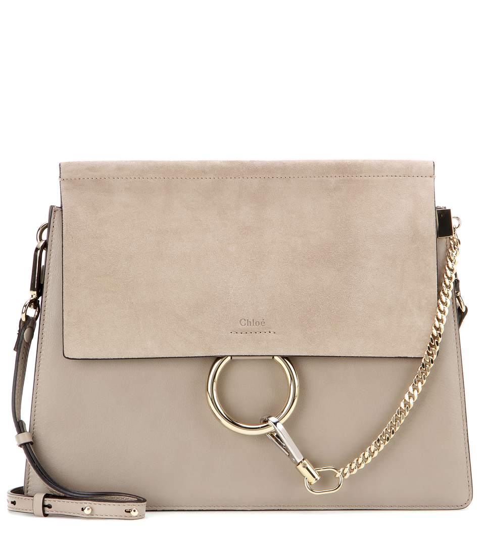 Gray Faye Medium Leather And Suede Shoulder Bag Chloe Net A Porter