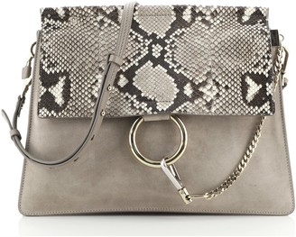 Chloe Faye Medium Leather And Suede Shoulder Bag In Gray Modesens
