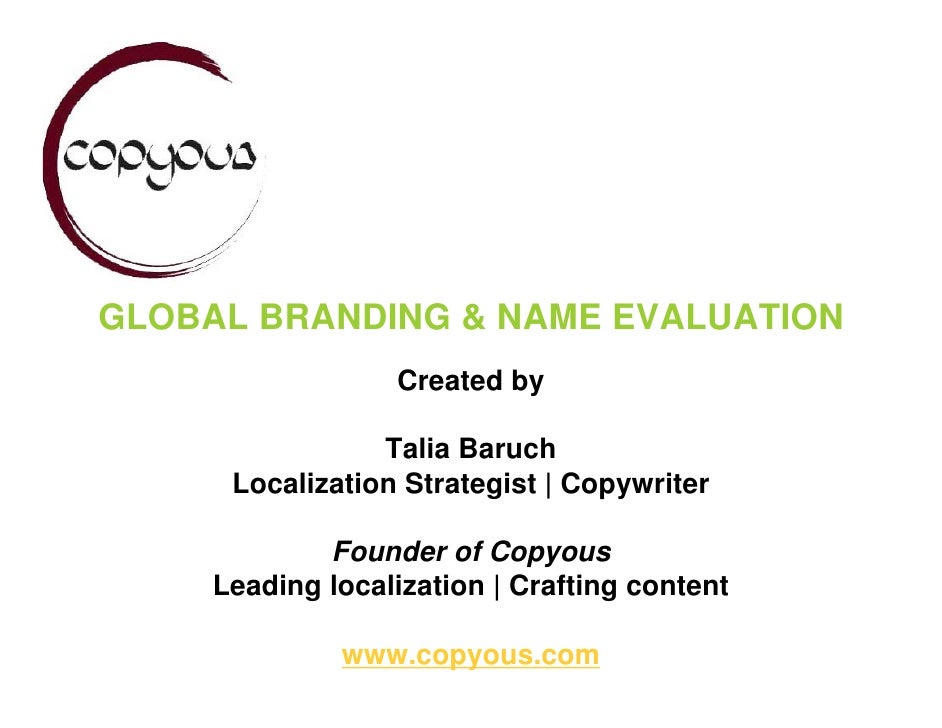 Global Branding Name Evaluation Talia Baruch