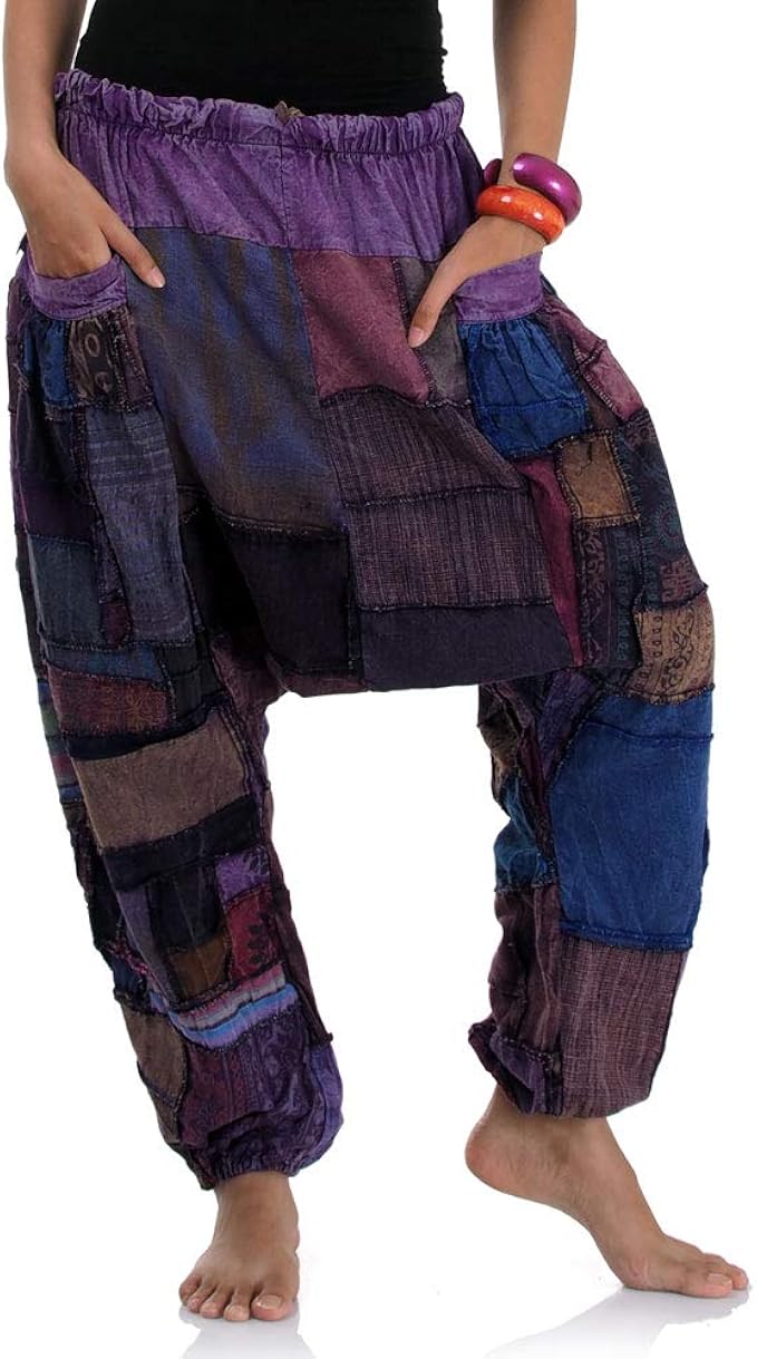 Princess Of Asia Weite Jeans Patchwork Hippie Hose Haremshose Aladinhose Pumphose Fur Damen Herren 36 38 40 42 S M Braun Amazon De Bekleidung