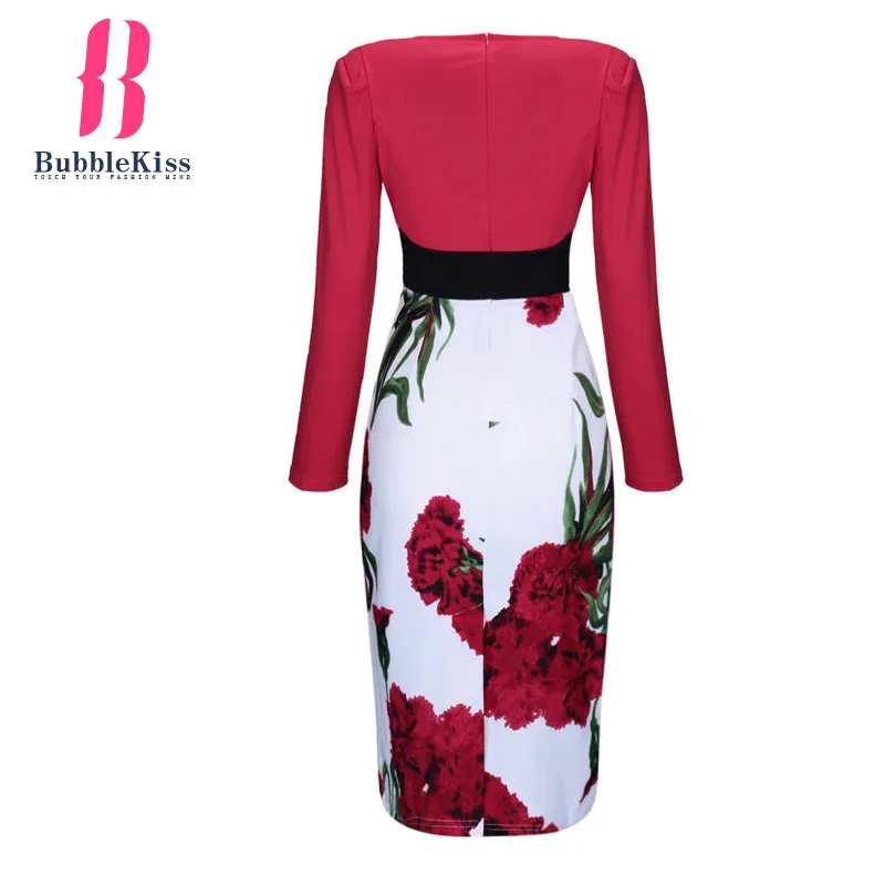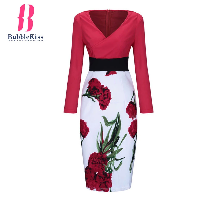 V Ausschnitt Blumendruck Etuikleid Langarm Frau Patchwork Blumen Elegante Blumendruck Kleid Retro Knielangen Bodycon Kleid Sheath Dress Floral Print Dressbodycon Dress Aliexpress