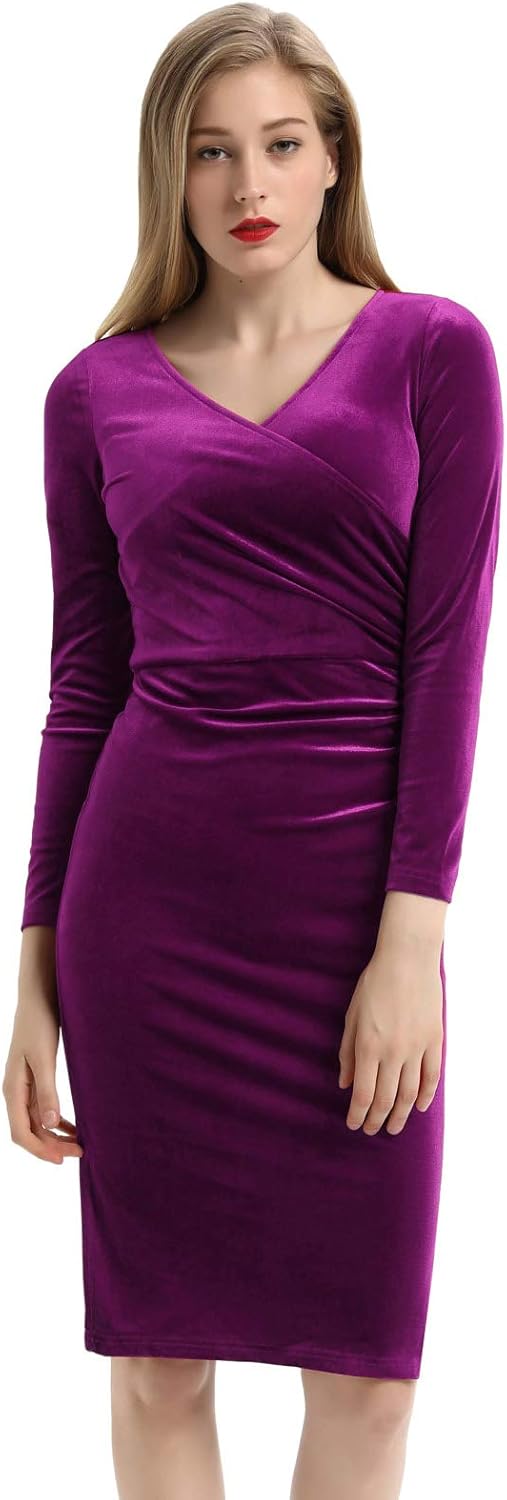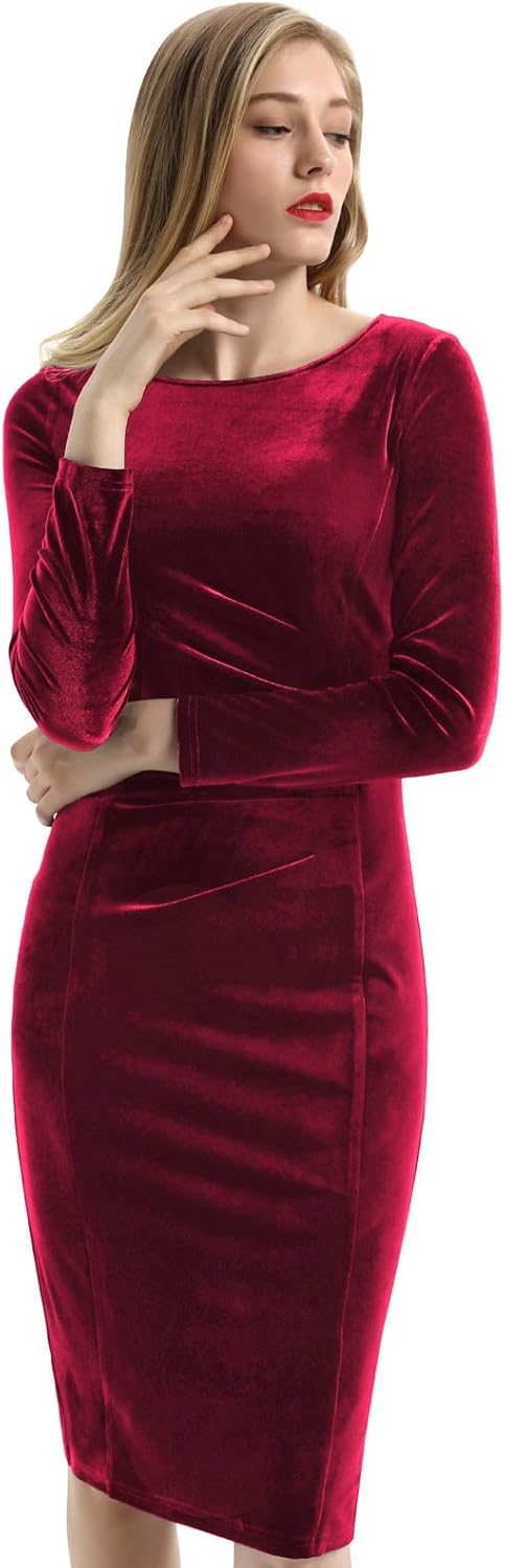 Damen Belle Poque Damen Langarm Samt Bleistiftkleid Knielang Elegant Etuikleid Bodycon Kleid Bp744 Bekleidung Fade Ie
