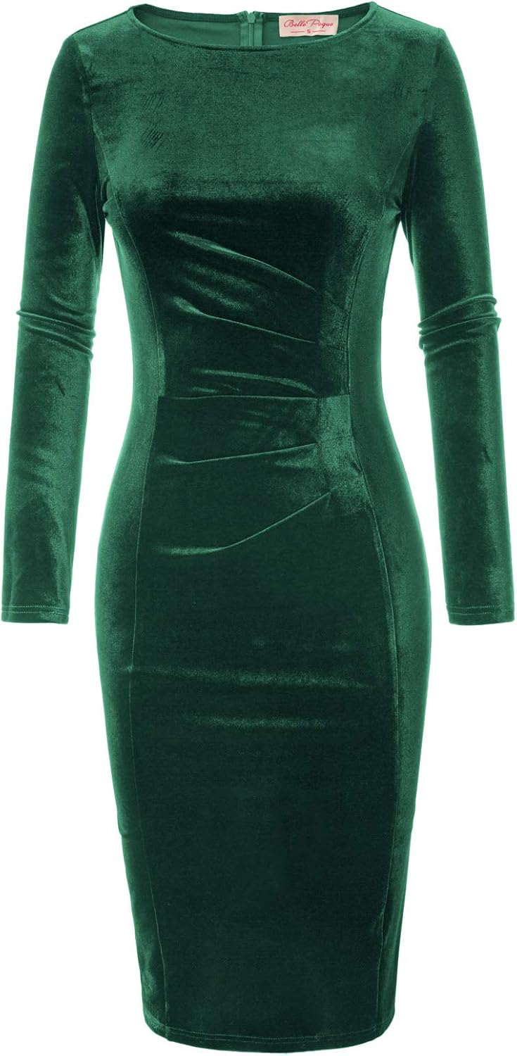 Damen Belle Poque Damen Langarm Samt Bleistiftkleid Knielang Elegant Etuikleid Bodycon Kleid Bp744 Bekleidung Guiadejericoacoara Com Br