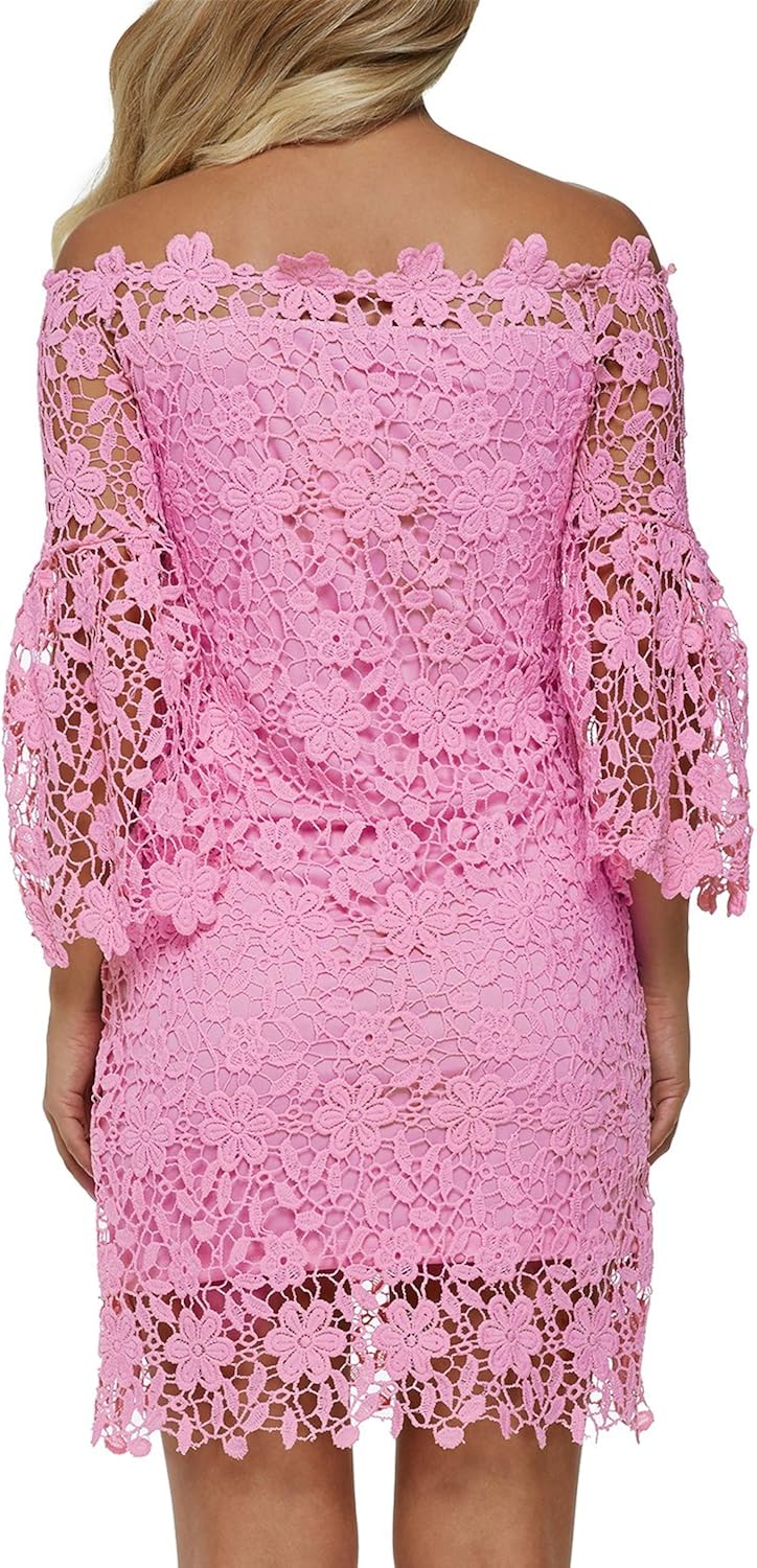 Auxo Damen Schulterfreie Langarm Kleider Mit Spitze Elegant Blumen Kurz Abend Etuikleid Kleider Abendkleider