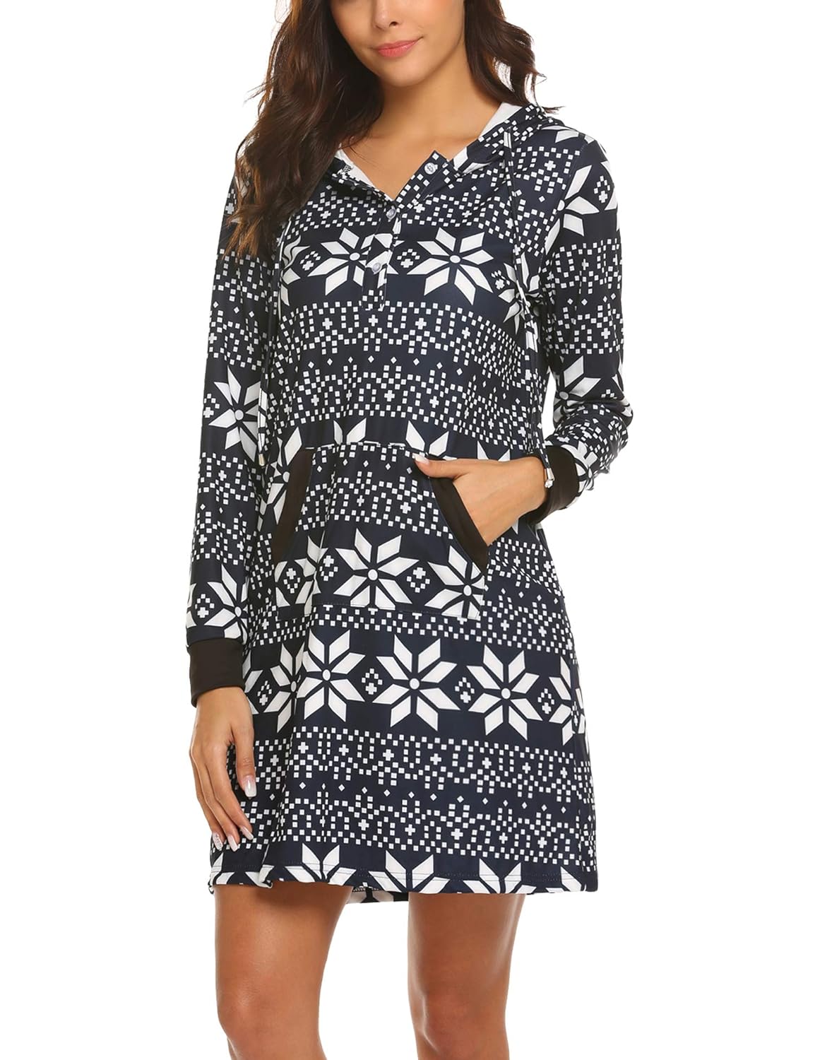 Damen Maxmoda Damen Nachthemd Kleider Langarm Elegant Kleid Maxikleid Maxi Kleid Casual Mit Tasche Hut Bekleidung Cerocero Mx