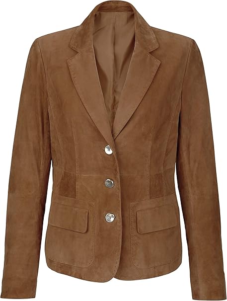 Alba Moda Damen Blazer Mit Reverskragen In Cognac Aus Ziegenveloursleder Aus Softem Ziegenvelours Amazon De Bekleidung