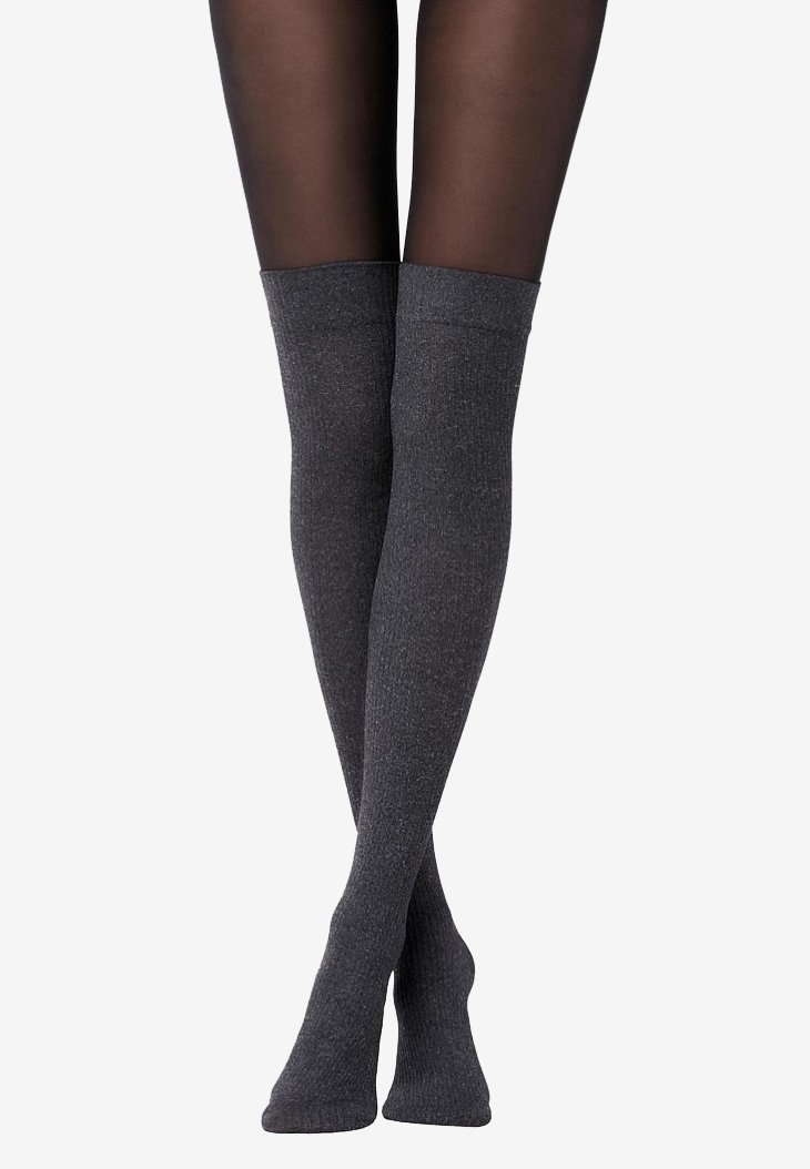 Blickdichte Strumpfhose In Strukturstrick Grau Meliert Fashion Knee High Sock High Socks