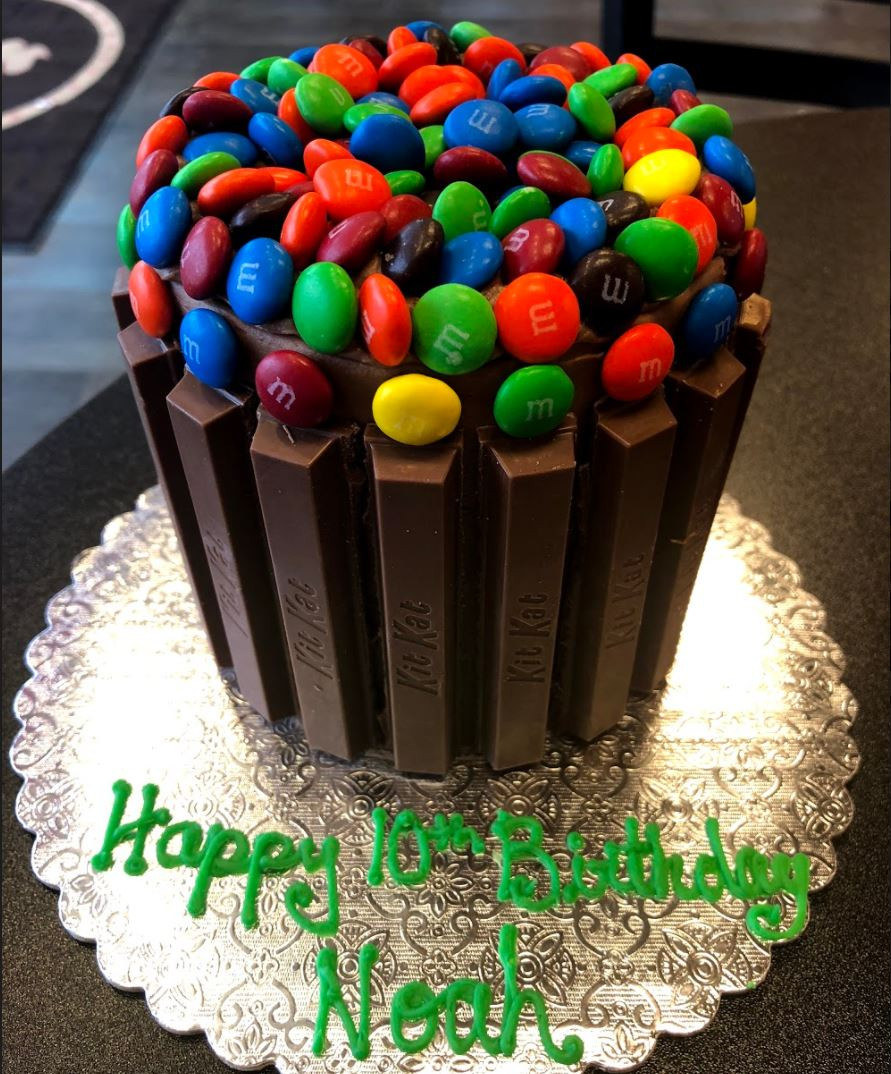 Oct 1, 18 The Family Cake Company is a London based bakery, specialising in bespoke cakes for all occasions and corporate cakes and cupcakes. Frost the 1st cake layer Set the 2nd layer on top of the first Frost the 2nd layer and along the sides of the cake too Stick Kit Kat's to the sides of the cake, leaving a very small space in between each Kit Kat (1/4inch) Wrap a bow around the cake, securing the Kit Kat's Fill the top of the cake with M&M's. We call this recipe “M&M Kit Kat cake” That is just what it isa frosted cake with M&M candies on top and Kit Kat candies surrounding the sides of the cake If you love chocolate, you will love this cake I know I do It is so yummy and sweet!.