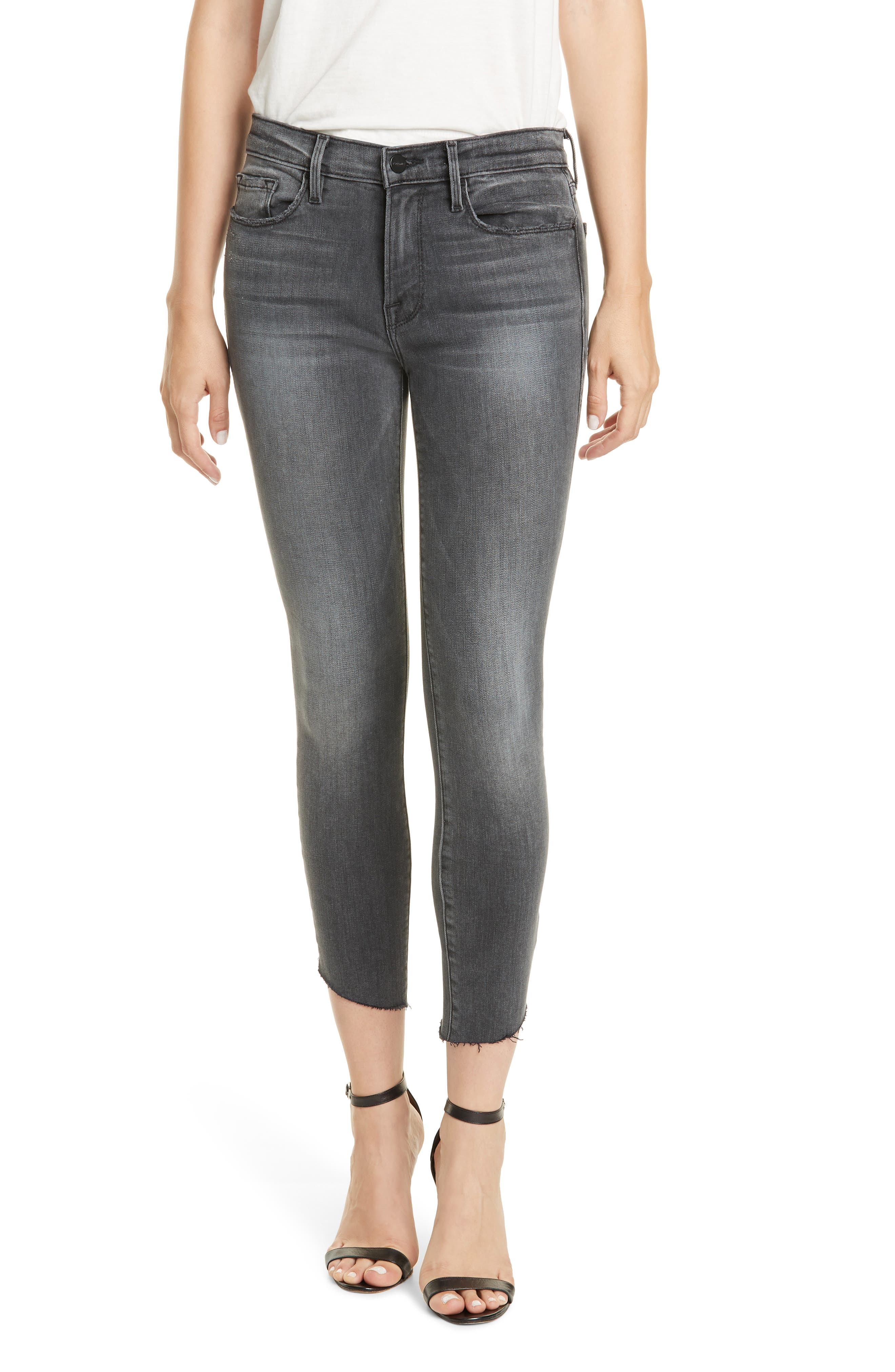 Frame Denim Le Skinny De Jeanne Raw Hem Ankle Jeans In Gray Lyst