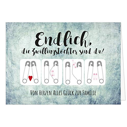 Grosse Xxl Design Geburtskarte Zur Geburt Zwillinge Klappkarte Mit Umschlag 2 Madchen Zwillingstochter Baby Grusskartenkaufen De