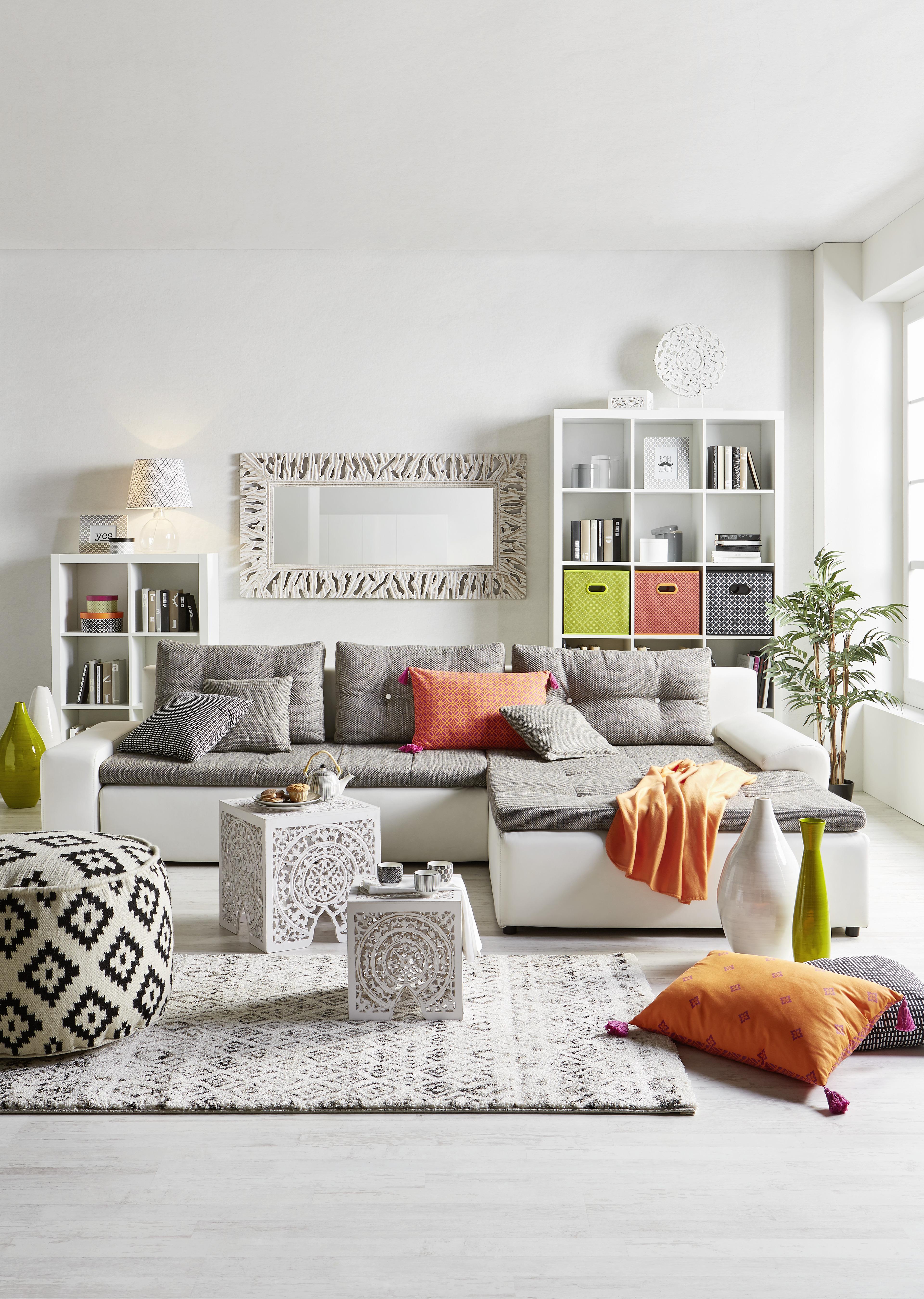 Wohnlandschaft In Grau Weiss Mit Bettfunktion Online Kaufen Momax