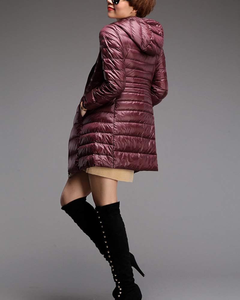 Zkooo Damen Daunenjacke Daunenmantel Ultra Leicht Steppjacke Lange Warm Ente Runter Gefuttert Ubergangsjacke Winterjacke Mantel Mit Kapuze Amazon De Bekleidung
