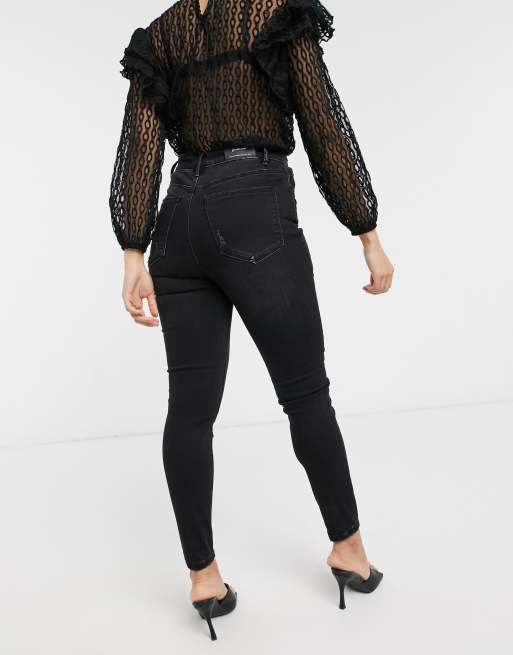 Stradivarius Petite Super High Waist Skinny Jean In Black Wash Asos