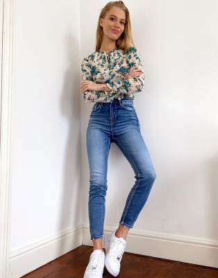 Super High Waist Skinny Jeans In Blue Wash From Stradivarius On 21 Buttons
