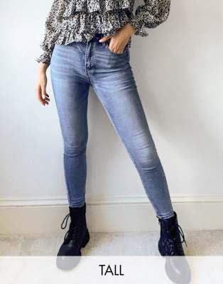 Stradivarius Tall Super High Waist Skinny Jeans In Light Blue Wash Asos