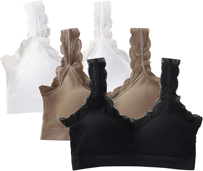De Feuilles 3 Stucke Damen Madchen Bustier Bralette Unterhemd Gepolstert Mit Spitze Weich Atmungsaktive Mit Abnehmbarer Polsterung One Size Kombi A Amazon De Bekleidung