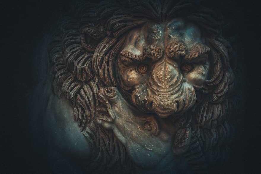 Spiritualitat Menschliches Gesicht Skulptur Kunst Religion Hintergrunde Dekoration Lowe Katze Statue Nahansicht Keine Leute Anyrgb