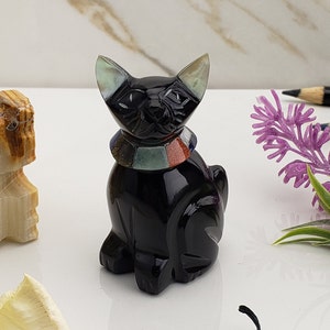 Obsidian Cat Family Obsidian Cat Cat Statue Pet Cat Statue Etsy