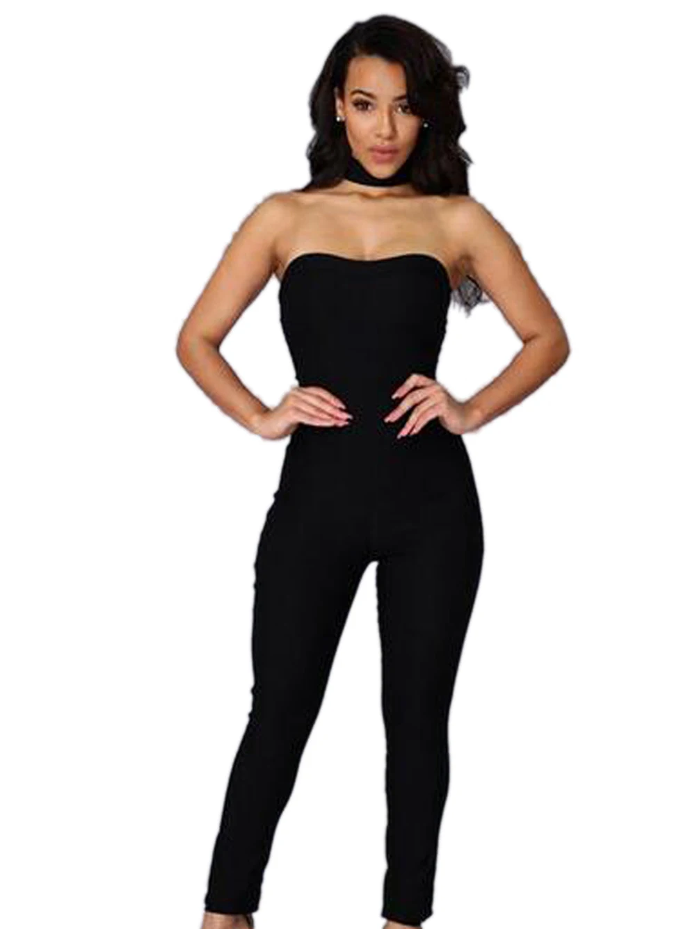 Choker Black Strapless Jumpsuit Sexy Club Party One Piece Outfits Long Jumpsuits For Women Bodycon Romper Playsuit Overall Black Strapless Jumpsuit Strapless Jumpsuitlong Jumpsuits For Women Aliexpress