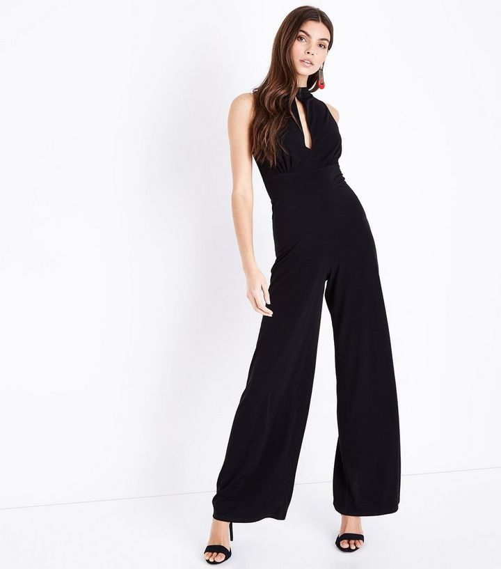 Schwarzer Neckholder Jumpsuit New Look