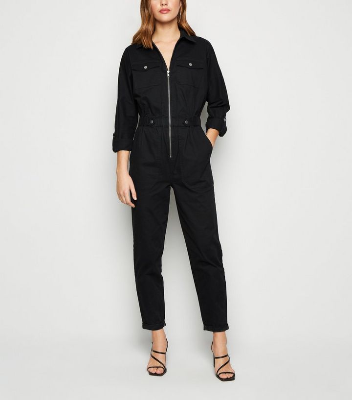 Schwarzer Jumpsuit Aus Denim Mit Reissverschluss New Look