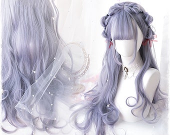 Lange Pastell Blau Rosa Ombre Perucke Szene Haar Blau Grau Etsy