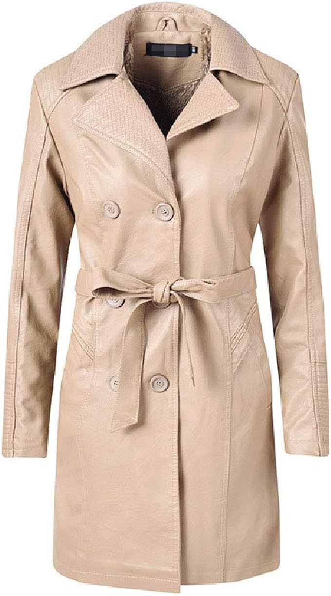 Angelspace Damen Trenchcoat Mit Doppelknopfen Fleece Lange Jacke Gr Us Medium Beige Amazon De Bekleidung
