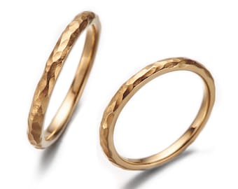 Gold Ehering Set Zwei Flach Gehammert Rustikale Struktur Etsy Gold Wedding Band Sets Mens Gold Wedding Band Handmade Wedding Rings