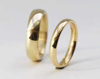 Gold Wedding Ring Set 14k Gold Matching Wedding Bands His And Hers Eco Friendly Recycled Gold Matching Gold Wedding Rings Passende Eheringe Eheringe Und Hochzeitsring Sets