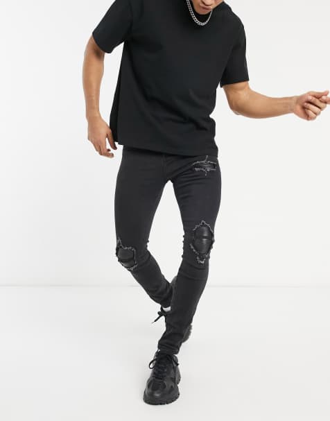 Asos Extreme Super Skinny Jeans In Black With Side Stripe Asos