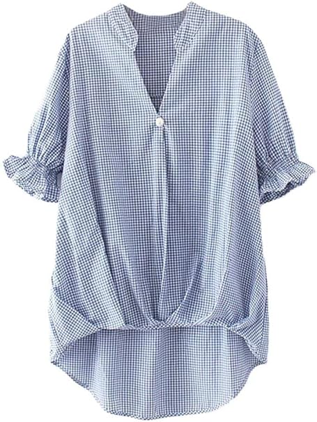 Lanceyy Bluse Damen Vintage Karierte Tunika V Ausschnitt Kurzarm Perfect Sommer Unregelmassig Freizeit Loose Asymetrisch Shirt Hemd Tops Style Amazon De Bekleidung