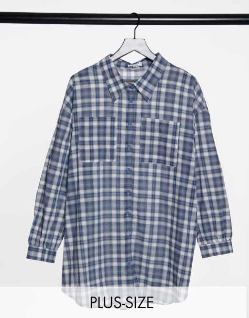 In The Style Plus X Megan Mckenna Lang Geschnittenes Hemd Blau Kariert Evesham Nj