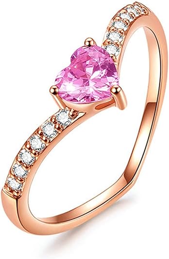 Aienid 18k Rotgold Ringe Fur Damen Schlicht Herzschliff Turmaline Rose Gold Ring Herzformig Size 61 19 4 Amazon De Schmuck