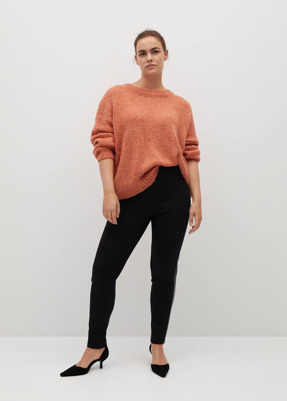 Leggings Mit Einsatzen In Leder Optik Grosse Grossen Violeta By Mango Deutschland