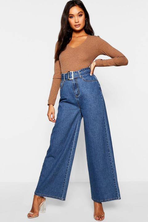High Waist Jeans Mit Weitem Bein Und Gurtel From Boohoo On 21 Buttons