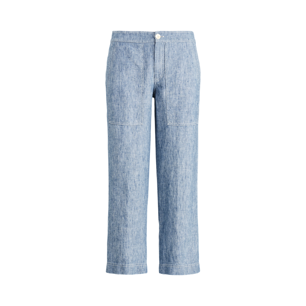 Chambray Leinenhose Mit Weitem Bein