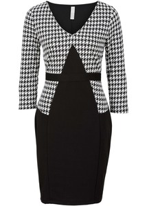 Burokleid Mit V Ausschnitt Gr 38 Schwarz Weiss Damen Businesskleid Etuikleid Neu Ebay