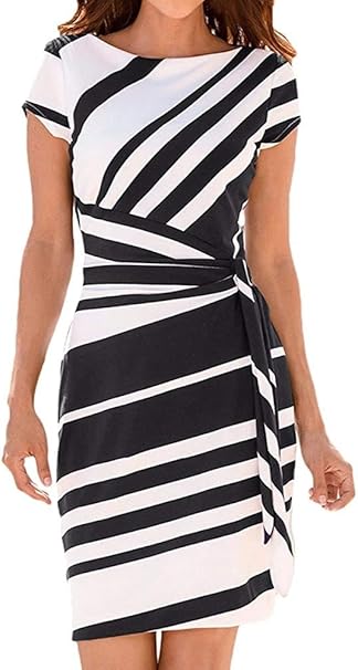 Poinwer Bleistftkleid Gestreift Sommerkleid Damen Kurzarm Abendkleid Rundhals Ausschnitt Elegant Minikleider Business Kleider Retro Festlich Hochzeit Farbe Schwarz Grosse L Amazon De Bekleidung