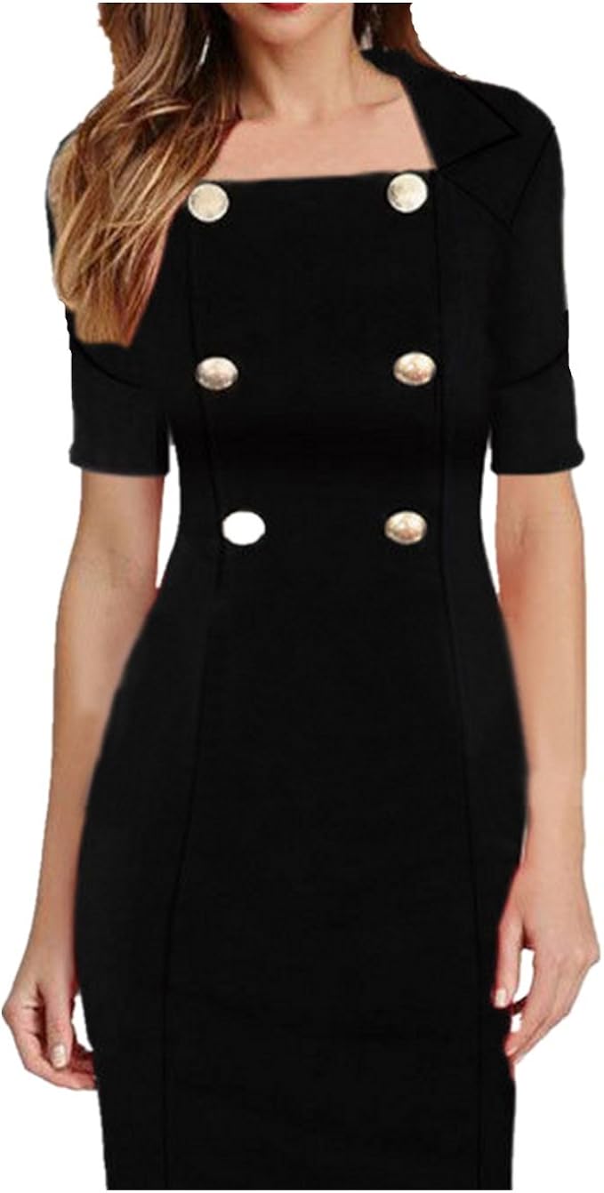 Walant Etuikleider Bleistftkleid Sommerkleid Damen Kurzarm Abendkleid Rundhals Ausschnitt Elegant Minikleider Business Kleider Retro Festlich Hochzeit Schwarz X Large Kleider Business
