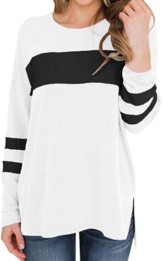 Damen Langarmshirt Rundhals Falten TShirt Lose Stretch Blusen Shirt Casual Oberteil Tunika Tops Frauen Kurzarm Dreifach Farbe Block Streifen TShirt Casual Bluse Damen Shirt Weisse Bluse Damen Schlupfbluse 4,5 von 5 Sternen 2.